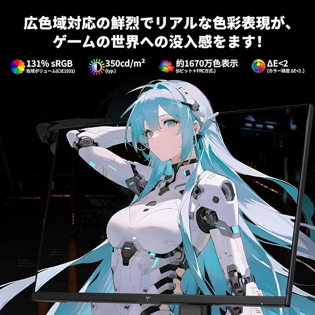 【鮮やかで精細な色彩表現】sRGB110%/DCI-P3 85%/Adobe RGB92%の広色域とHDR10対応で、ゲーム世界の色彩を忠実に再現。明部と暗部の細かいディテールまでくっきりと表示します。