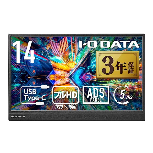 IODATA モバイルモニター 14インチ 省スペース 軽量 フルHD (Switch/PC対応/HDMI(ミニ)/Type-C/土日サポート/日本メーカー) EX-YC141D