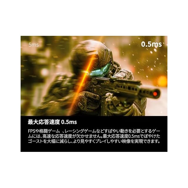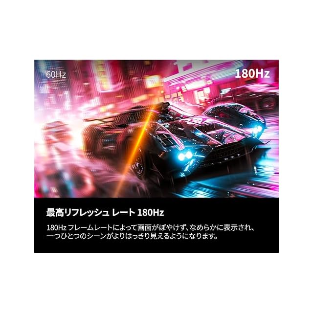 【最高リフレッシュレート180Hz&最大応答速度0.5ms】 FPSや格闘ゲーム、レーシングゲームなどすばやい動きを必要とするゲームには、高速応答速度が欠かせません。最大応答速度0.5msで、ぼやけやゴーストを大幅に減らし、180Hzフレームレートによって画面がぼやけず滑らかに表示され、一つ一つのシーンがはっきり見えるようになり、よりプレイしやすい映像を実現できます。