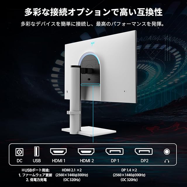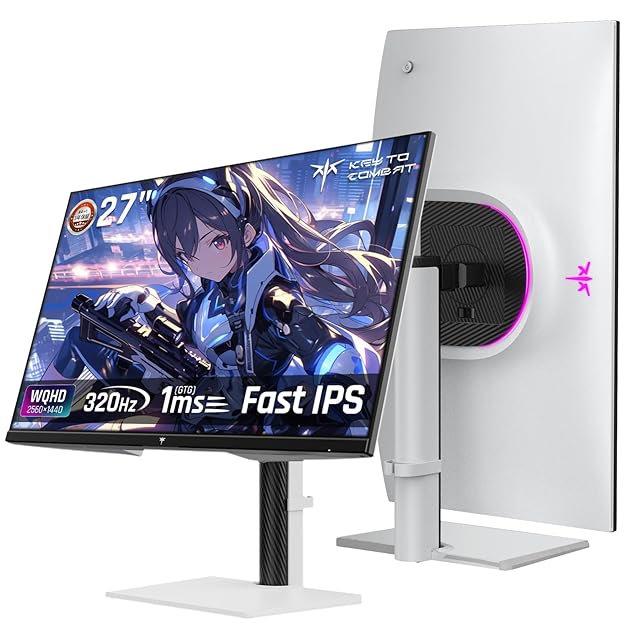 KEY TO COMBAT 27インチ WQHD (2560x1440) 300Hz(OC 320Hz) Fast IPS ゲーミングモニタ(1ms/144%sRGB/HDR400450cd/m²) 低ブルーライト/FreeSync & G-Sync対応/HDMI2.1×2 DP1.4×2 チルト・回転・昇降・ピボット対応で簡単设置 VESA 3年 白い KTCモニターH27E6