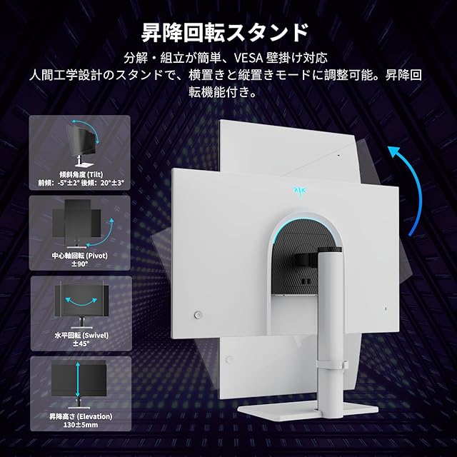 【調節可能なスタンド】チルト調整(-5°-15°(±3°))が可能なスタンドにより、最適な視野角を確保。快適な作業環境を提供します。