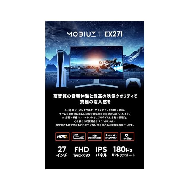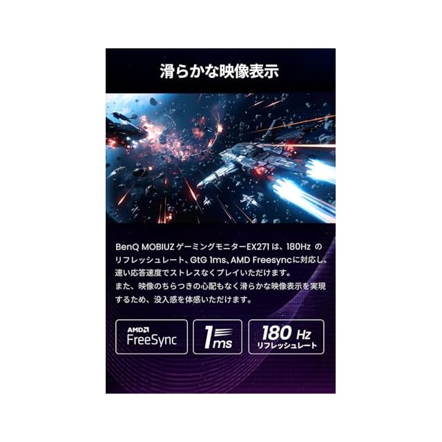 ベンキュージャパン BenQ MOBIUZ EX271 ゲーミングモニター(27インチ/Full HD/180Hz/1ms/HDR 400/スピーカー(2.5W×2)搭載/FreeSync/輝度自動調整(B.I.+ Gen2)搭載)