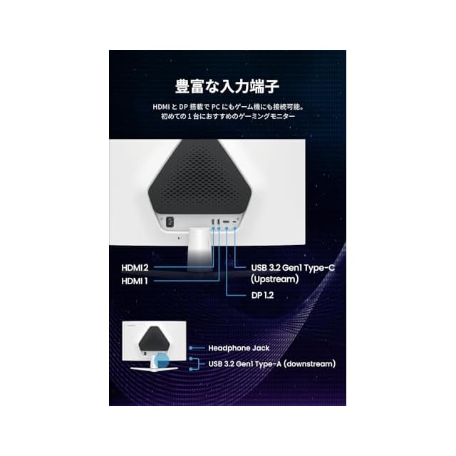 近未来的な筐体デザイン、2.5W×2の高音質treVoloスピーカー内蔵で迫力のあるオーディオ体験を提供、USBハブ搭載でマウスやキーボードなどの接続も可能