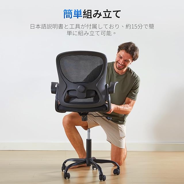 【組立簡単&2年間の品質付き】このオフィスチェアは組み立て部品があらかじめ分かりやすく分類されており、専用工具とわかりやすい日本語説明書が付属しているため、15~20 分程度で組み立て完成できます。また、ご購入の日より、2年間の品質が付いております。万が一商品到着後、初期不良・破損・取り付け方法が不明等の場合はお気軽にご連絡ください。輸送中に衝撃で商品が破損したり、汚れがつくことがありますが、その場合もご安心ください。無料で交換対応いたしますので、お気軽にお問い合わせください。