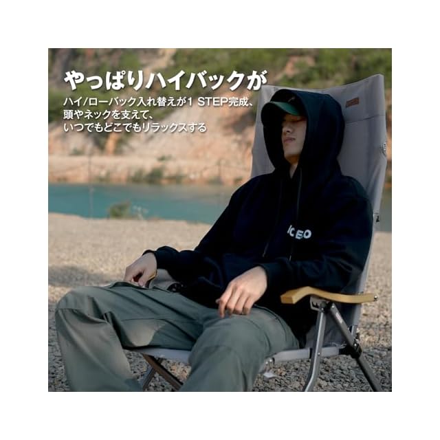 ICECO 4段階リクライニング式 ハイバックチェア 10年品質・耐荷重265KG・1600D座面・A7075アルミ合金フレーム・ハイ/ローバック切替可能 キャンプ 折りたたみ ガーデン 室内用(グレー)