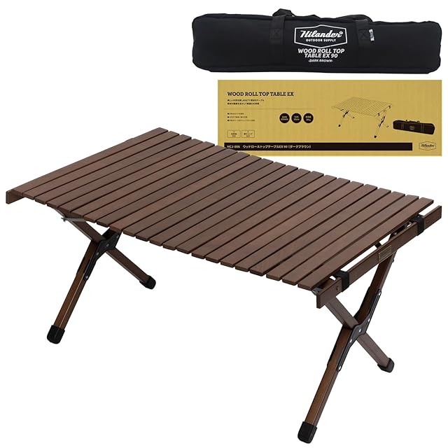 Hilander(ハイランダー) ウッドロールトップテーブルEX アウトドア キャンプ ローテーブル 90 DB ダークブラウン ロールテーブル 天然 コンパクト おしゃれ
