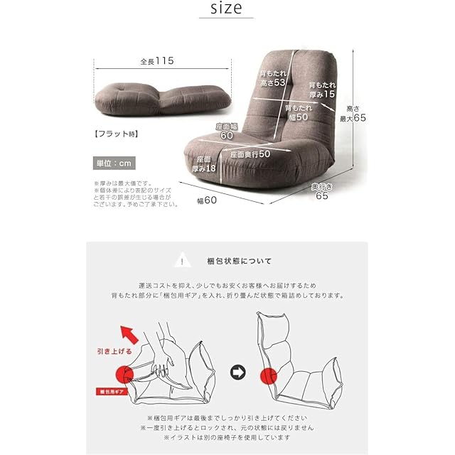 【サイズ】幅60×奥行65×高さ65cm (フラット時:幅60×奥行115×厚み最大18cm)