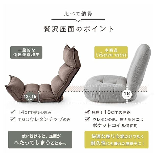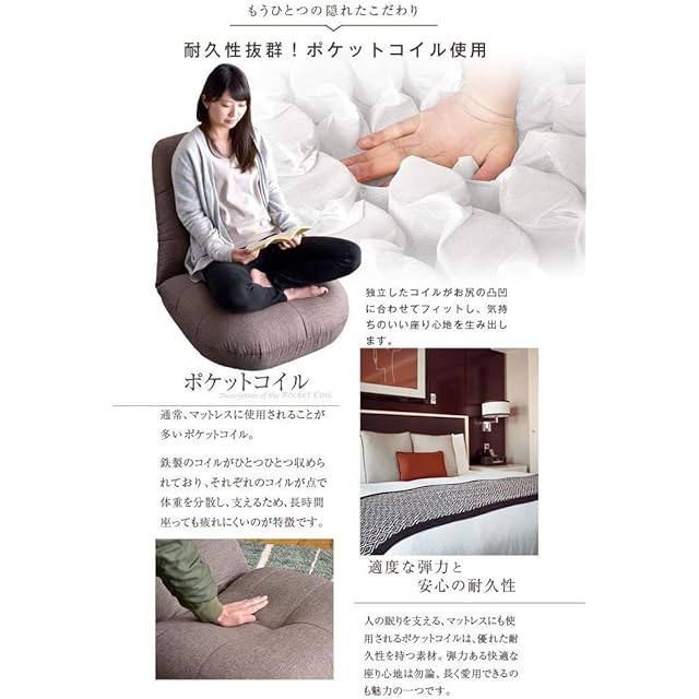 【スタッフのおすすめポイント!】・ポケットコイル使用でへたりにくく長寿命 ・座椅子なのに、ソファのような座り心地 ・身体を包み込む立体構造 ・リクライニング14段階 ・生地は選べる2タイプ -通気性、肌触りのいいダリアン生地 -大人かわいいくすみコーデュロイ