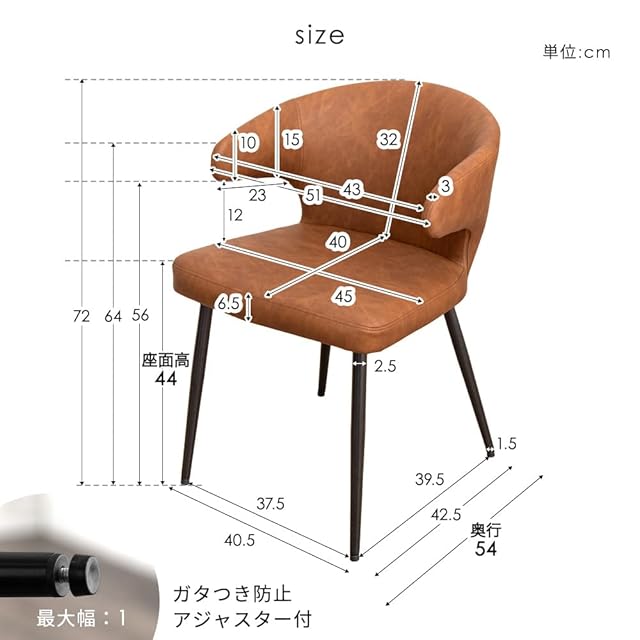 【サイズ】外寸:幅51×奥行54×高さ72cm/座面高:約44cm【重量】約5.5kg (1脚あたり)【耐荷重】約100kg
