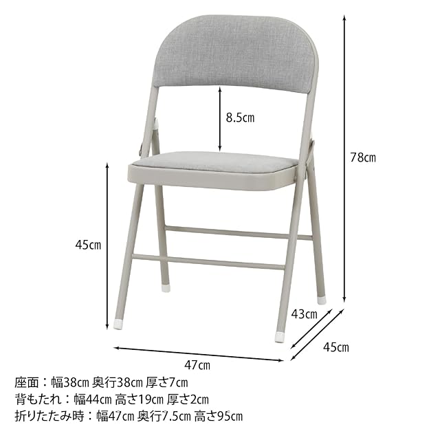 不二貿易 折りたたみチェア 椅子 パイプチェア 座面高45cm 背もたれ付き 幅47×奥行45×高さ78cm ポリエステル グレー 73648