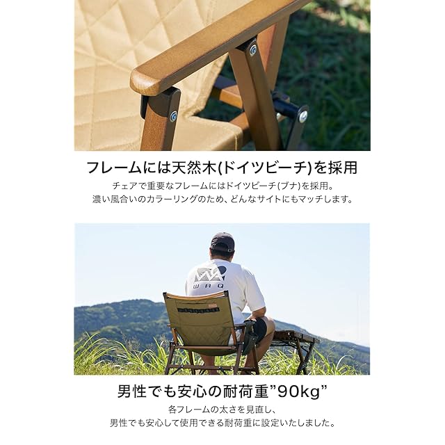 【WAQ Folding Wood Chair】大人から子供まで、ロースタイルを楽しむウッドローチェアが登場。【細部まで拘ったウッドチェア】WAQの ウッドチェア はドイツビーチを採用したウッドフレーム、心地よい座面加工を施したキルティング加工シート、飲み物を入れられるホルダー付き、耐荷重90kgのロータイプチェアです。