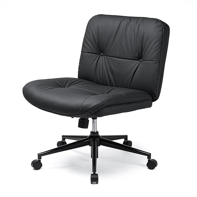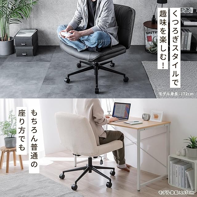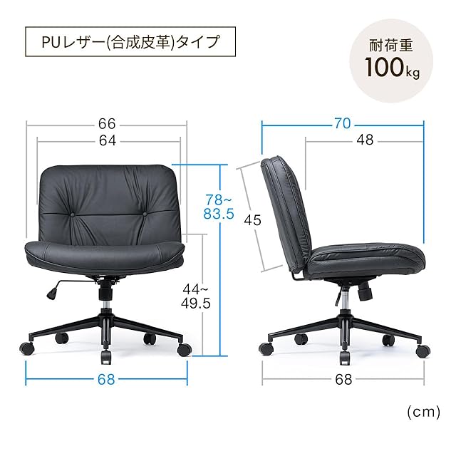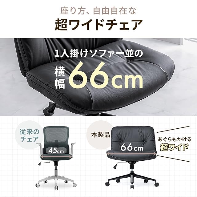 サンワダイレクト あぐらチェア デスクチェア PUレザー ロッキング機能 高さ調節可能 キャスター付き 回転座面 ワイド 幅広 一人掛け ブラック 150-SNCH54LBK