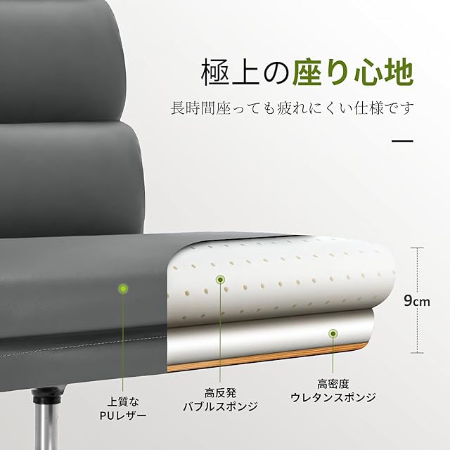 【シンプルデザイン&極上の座り心地】シンプルで洗練されたデザインを持つ、ビジネスパーソン・学生・在宅ワーカーに最適な「疲れないデスクチェア」です。デスクチェアの座面クッションは柔らかい材質で作られました。座面の下層は高密度ウレタンスポンジ 、上層は高反発バブルスポンジを採用しており、二層反発綿でつくられた座面は普通のより緩和性がよい、柔らかくて肌に優しい、極上の座り心地を長く支えます。