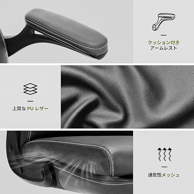 オフィスチェア デスクチェア 椅子 疲れない 上質なPUレザー 跳ね上げ式アームレスト 極上の座り心地 人間工学 イス ワークチェア ビジネスチェア 在宅ワーク/ゲーミング/勉強/事務用 おしゃれ
