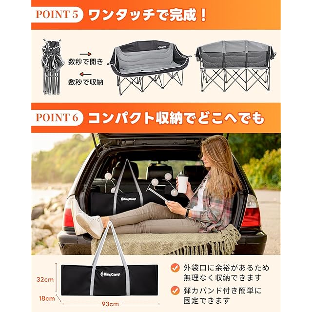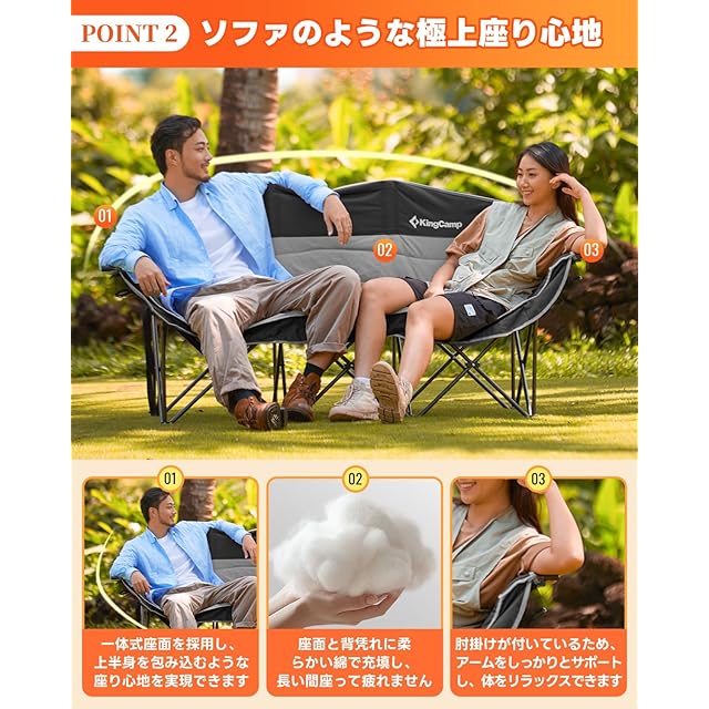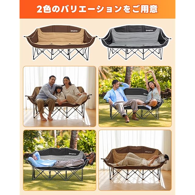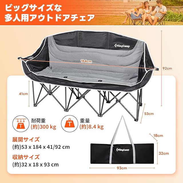 KingCamp アウトドア チェア 三人掛け キャンプ 椅子 3人掛け 折りたたみ式 耐荷重300kg ソファチェア カップルチェア 三人用 収納袋付き 釣り 運動会 ガーデン コンパクト 室内