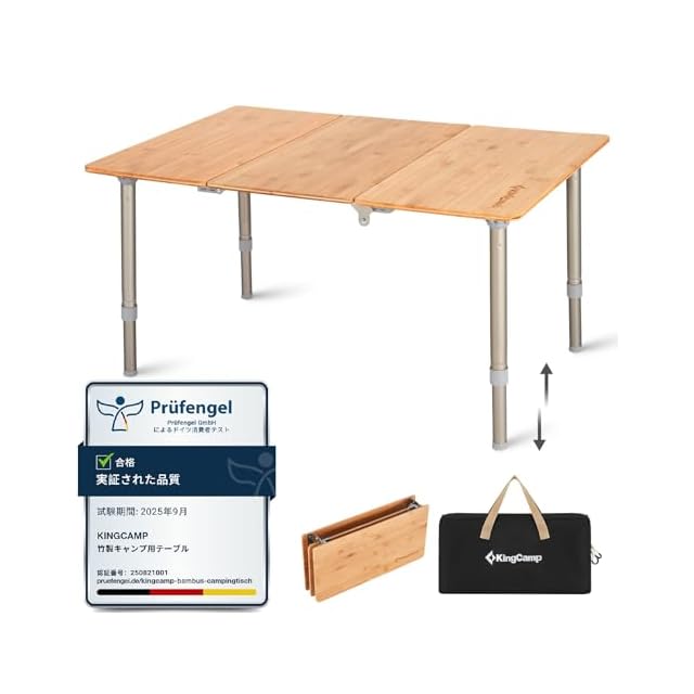 KingCamp キャンプ テーブル 折り畳み アウトドア 無段階高さ調節 超軽量 バンブーテーブル 3折 ロールテーブル 耐荷重30kg コンパクト 収納付き ピクニック 登山 携帯便利 75 x 50 x 30-40 cm