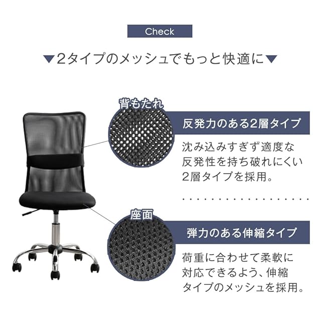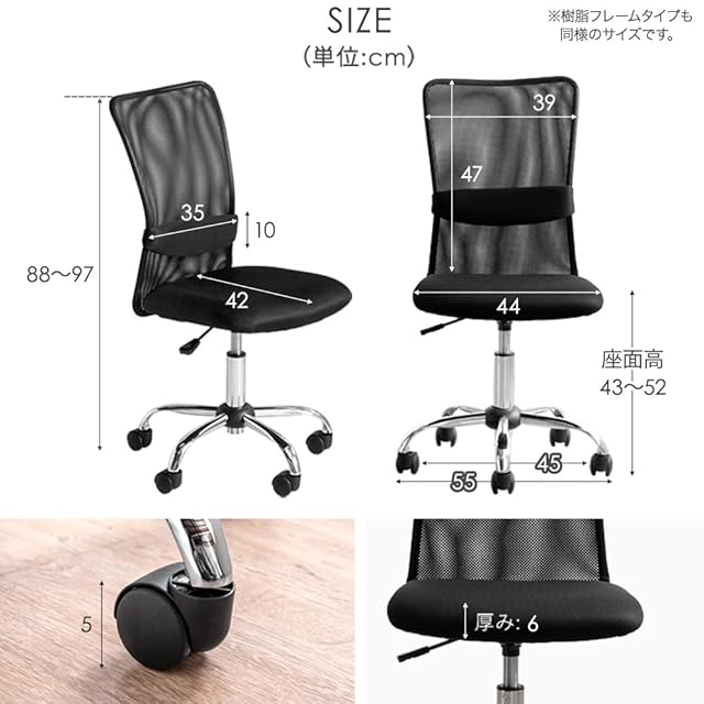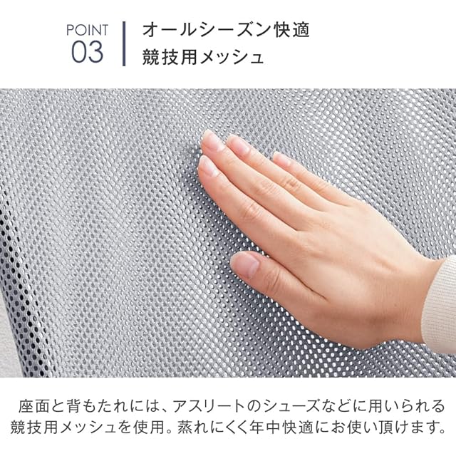 【素材】張り地:オールメッシュ生地(ポリエステル100%)、内部:ウレタンフォーム、フレーム:樹脂/スチール、キャスター:ナイロン