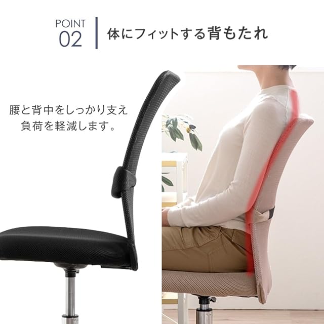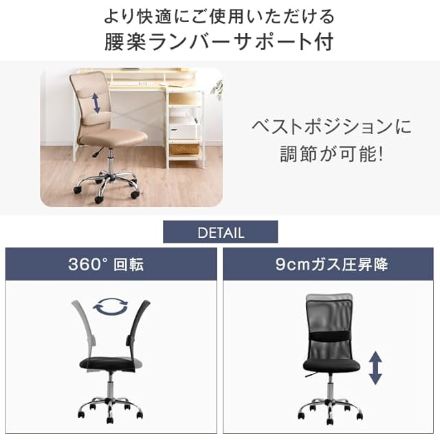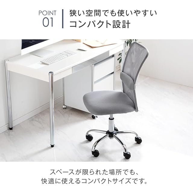 【スタッフのおすすめポイント】 ・狭い空間でも使いやすいコンパクト設計 ・通気性に優れたオールメッシュ ・腰を支えるランバーサポート付 ・お手頃な樹脂フレーム