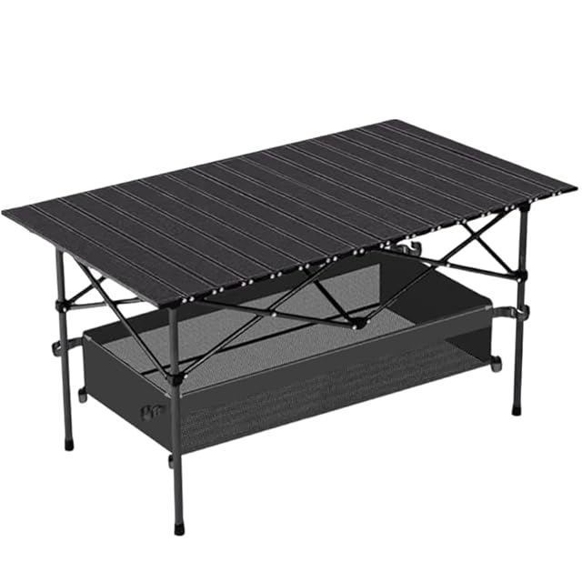HBEISE キャンプテーブル 【2025強化版 簡単組立テーブル 工場直販】アウトドア 折りたたみ95cm/120CM アウトドア折りたたみ 耐荷重150kg テーブル ロールトップ 軽量 コンパクト 簡単組立 収納バッグ付 インテリア キャンプ (Mサイズ95cm)