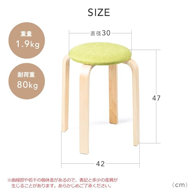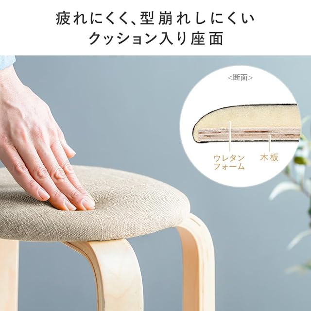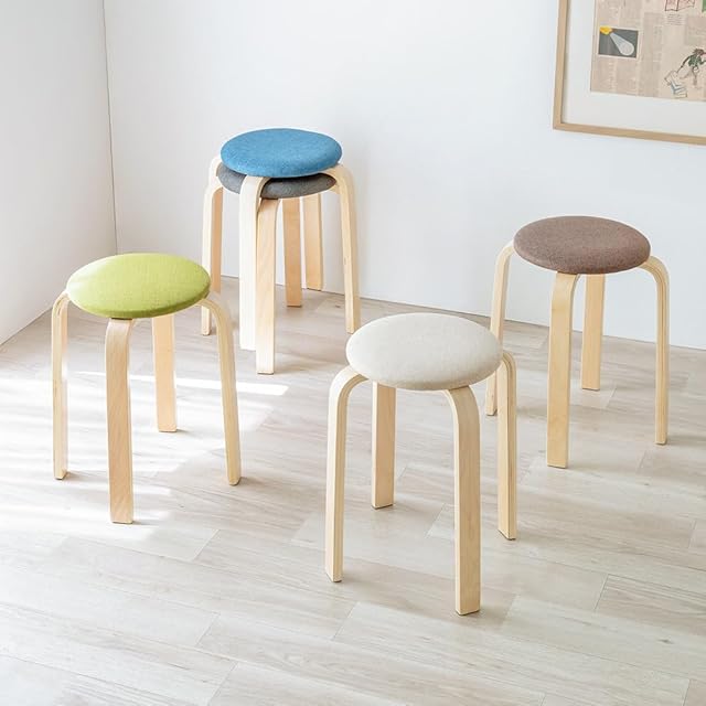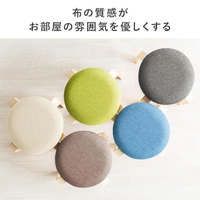 イーサプライ スツール 木製 クッション ファブリック 北欧 ナチュラル スタッキング おしゃれ 丸椅子 完成品 グリーン EEX-CH83G