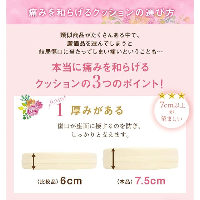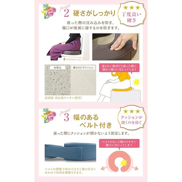 マジックテープがU字の広がりを防いで患部が座面に触れるのを防ぎます。