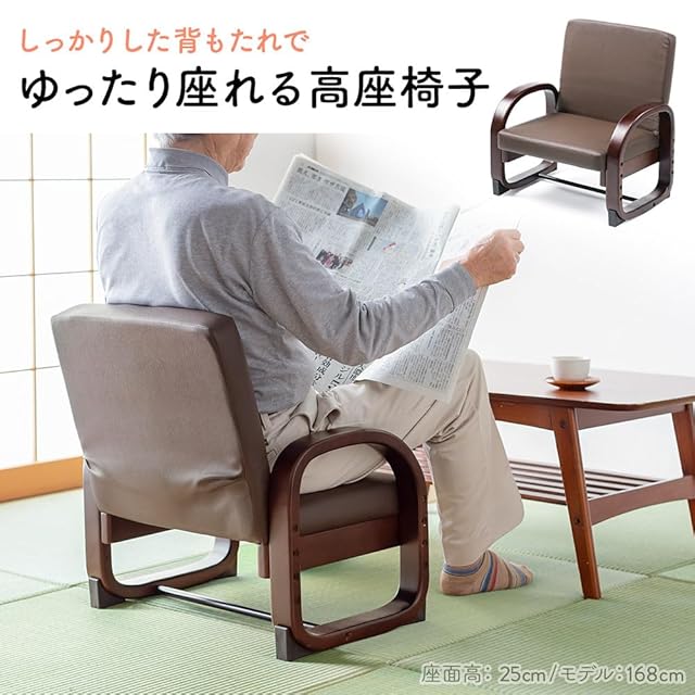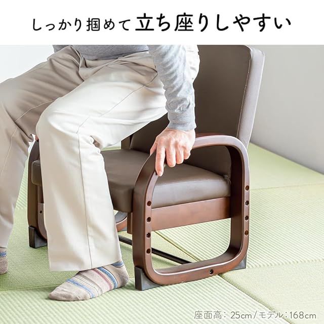 【しっかりつかめて立ち座りしやすい】畳のお部屋などでの使用に、立ち座りがラクな高座椅子(座敷椅子)です。背もたれがしっかりあり、座面の横幅も広いのでゆったりと座れます。