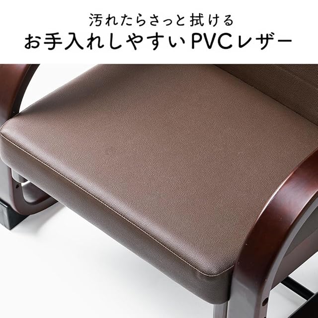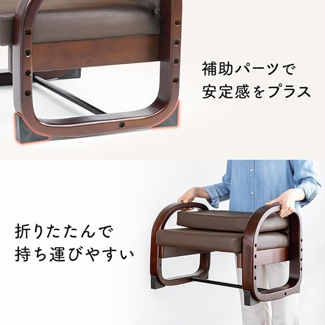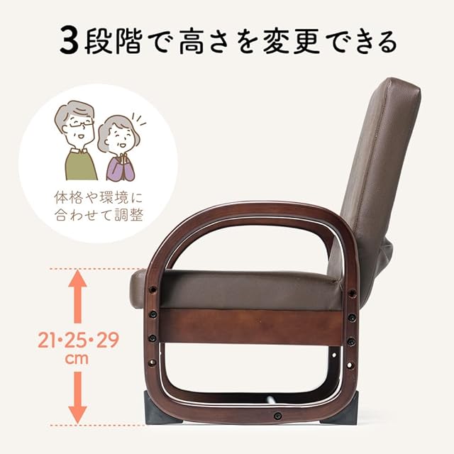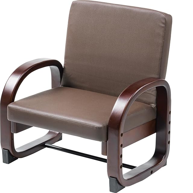 イーサプライ 高座椅子 ロータイプ 肘掛け 立ち上がり 高さ調整3段階 背もたれ 折りたたみ PUレザー コンパクト 完成品 ブラウン EEX-CHSN04BR