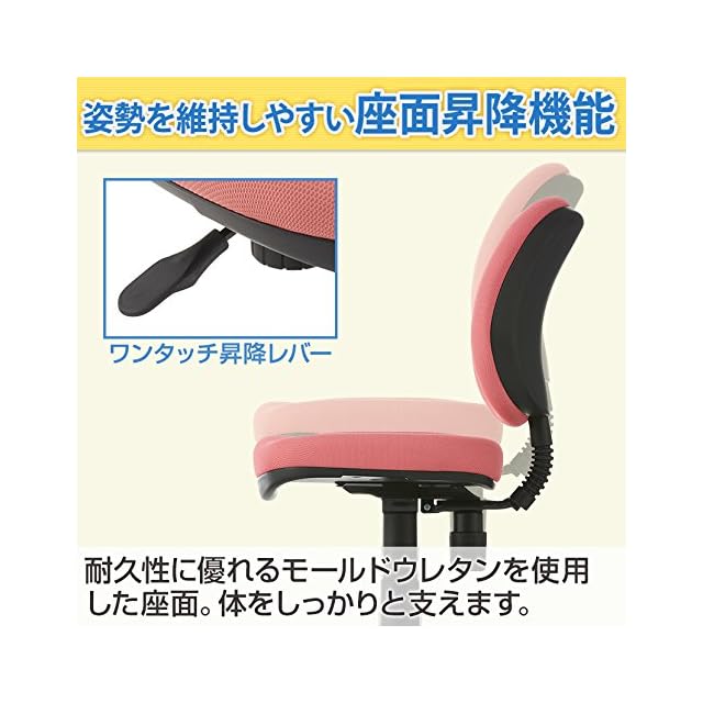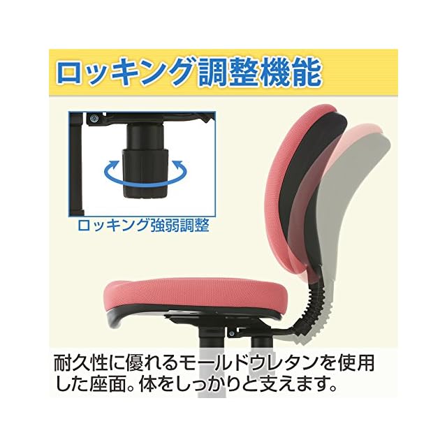 機能:ロッキング(調整機能)付き・上下昇降機能付き(高さ調節可能)・キャスター付き