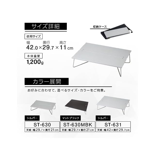 使用時サイズ:幅42×奥行29.7×高さ11cm、収納時サイズ幅42×奥行15.5×高さ3cm、本体重量:約1.2kg