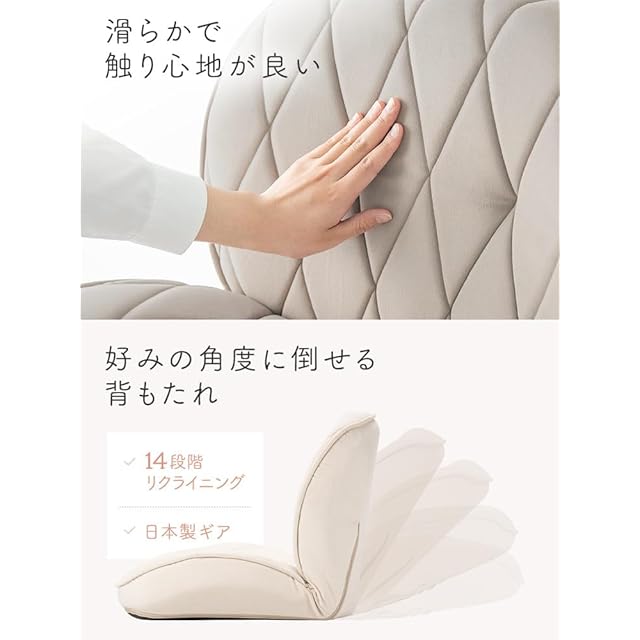 【14段階リクライニング対応】シーンに合わせて角度を細かく調整できるので、テレビ、読書、昼寝など、いつでも“ちょうどいい姿勢”で快適に過ごせます。