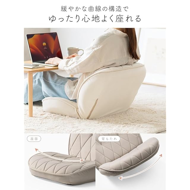 イーサプライ 座椅子 コンパクト 14段階リクライニング 横幅58cm クッション 背もたれ かわいい おしゃれ 日本製ギア モカブラウン EEX-CHSD07ZBR