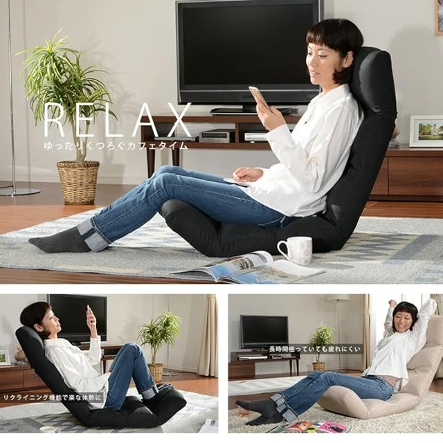 セルタン 座椅子 高反発 和楽の雲 下タイプ ダリアンブラック 頭部脚部リクライニング 日本製 A193下R-564BK