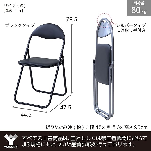 山善(YAMAZEN) 折りたたみ椅子 パイプ椅子 【4脚セット】幅44.5×奥行47.5×高さ79.5cm 椅子 軽量 折りたたみチェア 完成品 ブラック YZX-084P(BK)