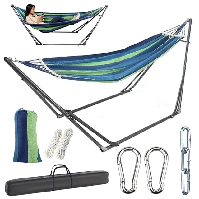 サムコス ハンモック 自立式 チェア ハンガー ラックスイングチェア ハンモック室内 室外 兼用 折りたたみ ハンギングチェア 高さ調整可能 ポータブル 公園 アウトドア キャンプ 吊り椅子 組立て簡単 耐荷重約300kg 収納バッグ付き(青)