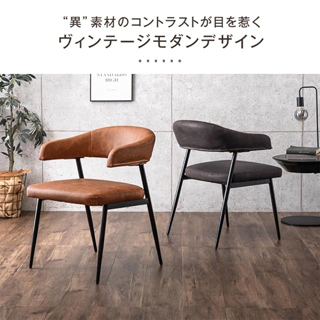タンスのゲン ダイニングチェア 2脚セット 肘付き お掃除ロボット対応 ハーフアーム ハンギング レザー リビングチェア ファブリック 83200032(104009)