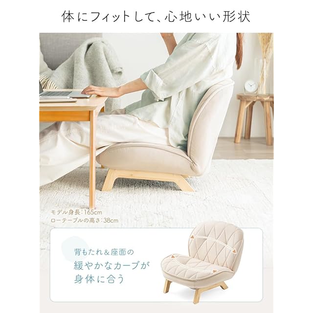 【お部屋に映える可愛さ】一人暮らしやワンルームでも置きやすいコンパクト設計の高座椅子です。圧迫感が少なく、快適なリラックス空間を演出します。北欧風インテリアやナチュラルなお部屋にも馴染む可愛いデザインです。