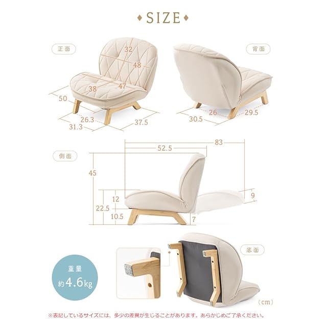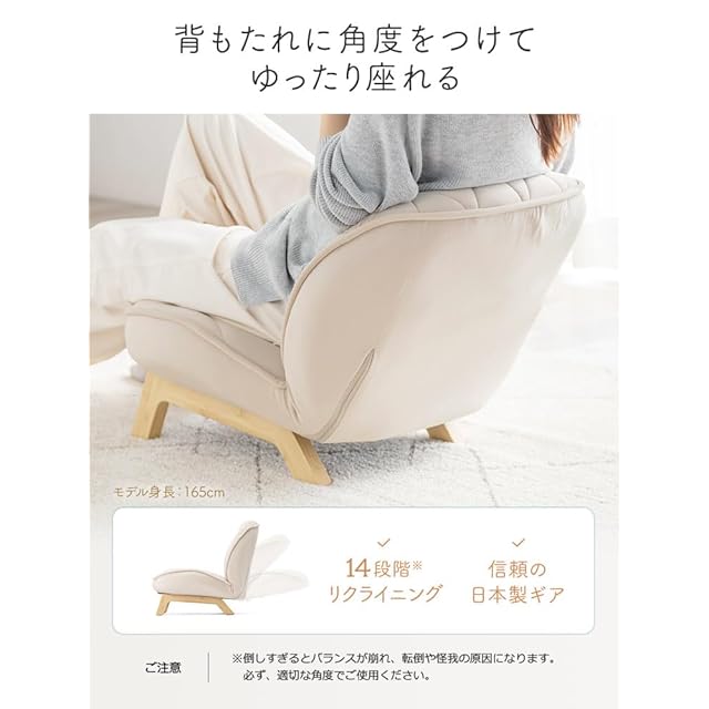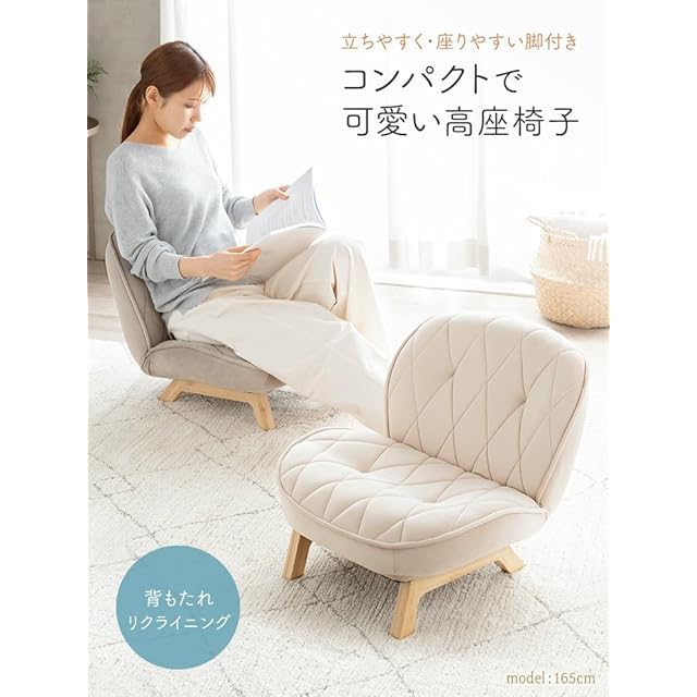 イーサプライ 座椅子 コンパクト リクライニング 14段階 脚付き 1人掛け 横幅50cm 日本製ギア おしゃれ かわいい デザイン クリームベージュ EEX-CHSD08ZBG