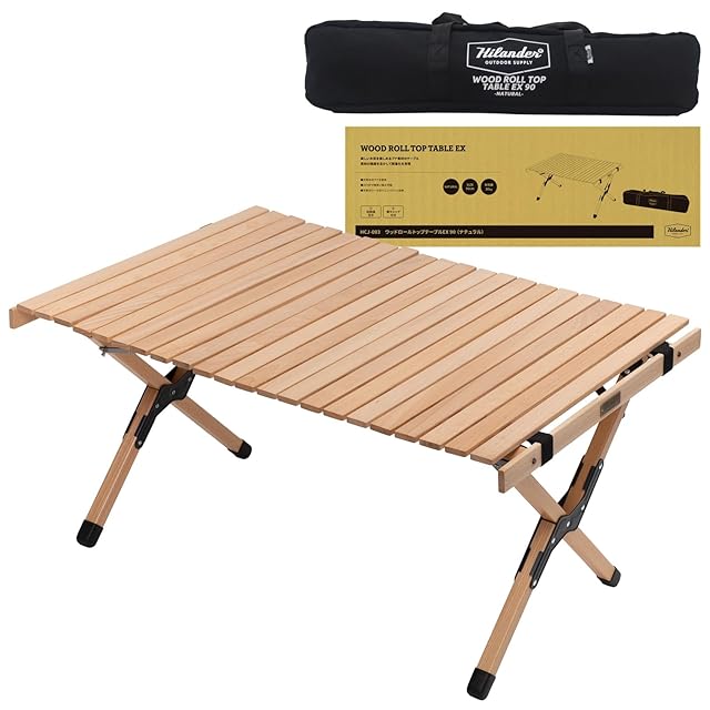 Hilander(ハイランダー) ウッドロールトップテーブルEX アウトドア キャンプ ローテーブル 90 NATURAL ナチュラルカラー ロールテーブル 天然 コンパクト おしゃれ