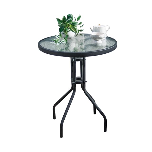 リビングアウト(Living Out) ガーデンガラステーブル パラソル対応モデル 直径60x高さ70cm 5.3㎏ ガーデンファニチャー カフェ ダイニングテーブル 屋外 ガラス 組立