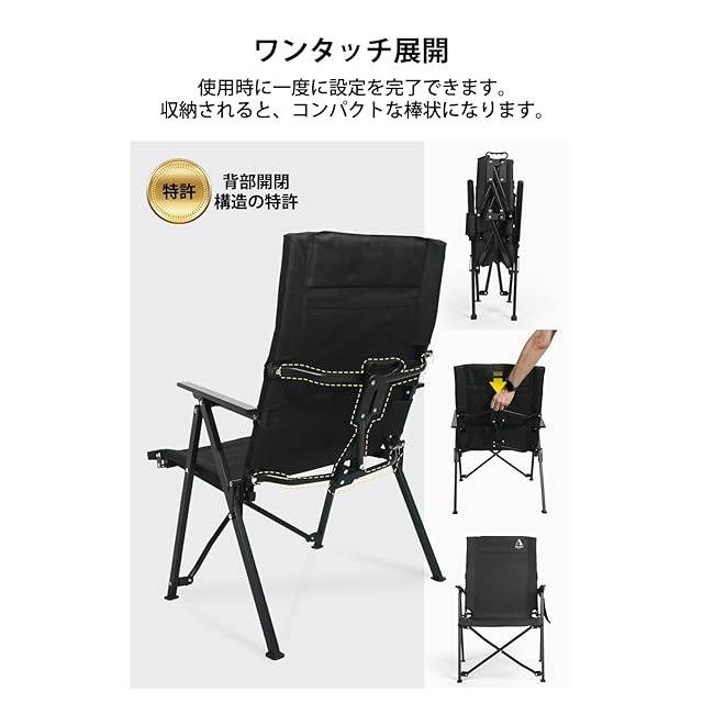 瞬間セットアップで時間を節約: アウトドアライフをもっと手軽に。1秒で設置できる折りたたみチェアは、面倒な組み立て不要。キャンプや花見、釣り、ピクニックなど、様々なアウトドアシーンですぐに使える便利さで、初心者の方でも安心です。
