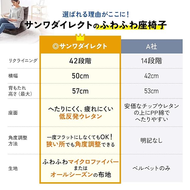 弾力のあるぶ厚い低反発ウレタンを使用したスタンダードな フロアチェア です。