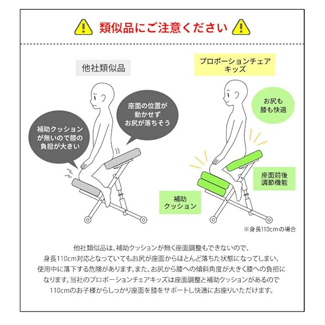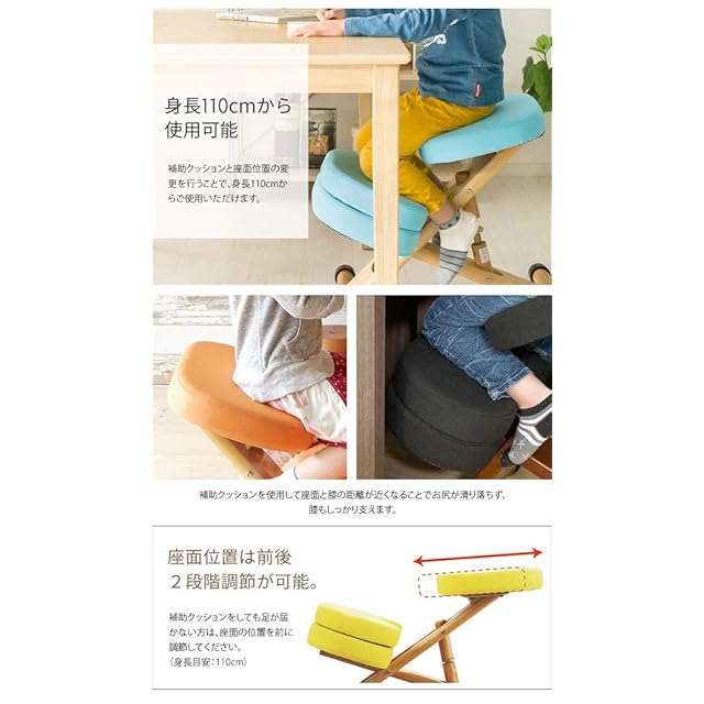 座面位置は前後2段階調節可能。身長110cm以上に対応。
