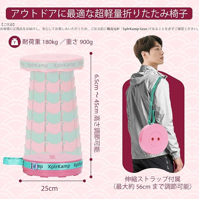 XplrKamp 折りたたみ椅子 伸縮式 超軽量900g 耐荷重180kg コンパクト 日本語マニュアル付き 持ち運び アウトドアチェア 防水 1秒開閉可能 10段階調整 ショルダーストラップ付き キャンプ/万博/釣り/夏祭り/花火大会/スポーツ観戦/バーベキュー/屋内屋外兼用(2, サクラミント)