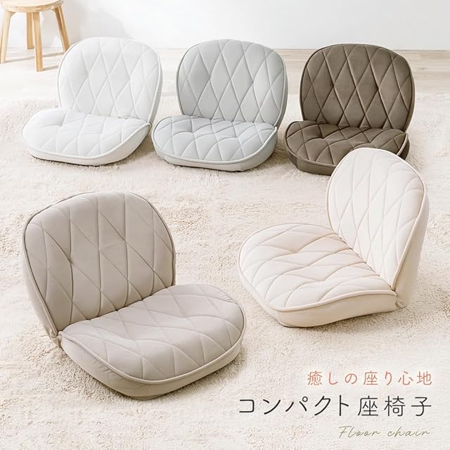 イーサプライ 座椅子 コンパクト 14段階リクライニング クッション 背もたれ かわいい 小さい おしゃれ 日本製ギア グレー EEX-CHSD04ZLGY