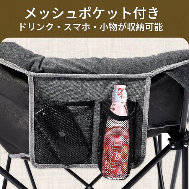 【多機能デザイン|リラックスチェア】サイドメッシュポケットと背もたれ収納スペース(Lサイズなし)を装備し、スマホや小物の整理に最適な設計。また、人体工学に基づいた設計で、体全体を優しく包み込むようなリラックス感を実現、長時間の使用でも疲れにくい快適な座り心地が特徴です。キャンプやピクニックはもちろん、ご自宅の庭やリビングでのくつろぎタイムにも最適です。