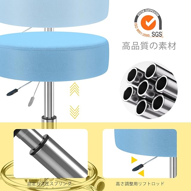 【SGS認証の防爆エアロッド】:安全性は当社の最優先事項です! キャスター 椅子SGS認証のClass3防爆エアロッドを使用し、厳密なテストを行い、偶発的なエアロッド破裂のリスクを効果的に回避し、お客様の安全を守ります。高品質のエアロッドは、耐久性、安定性、信頼性が高く、長期安定使用を提供します。