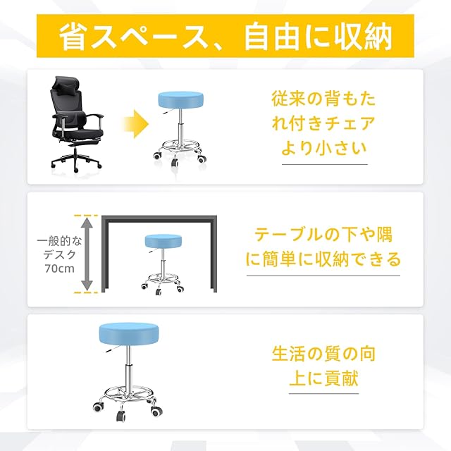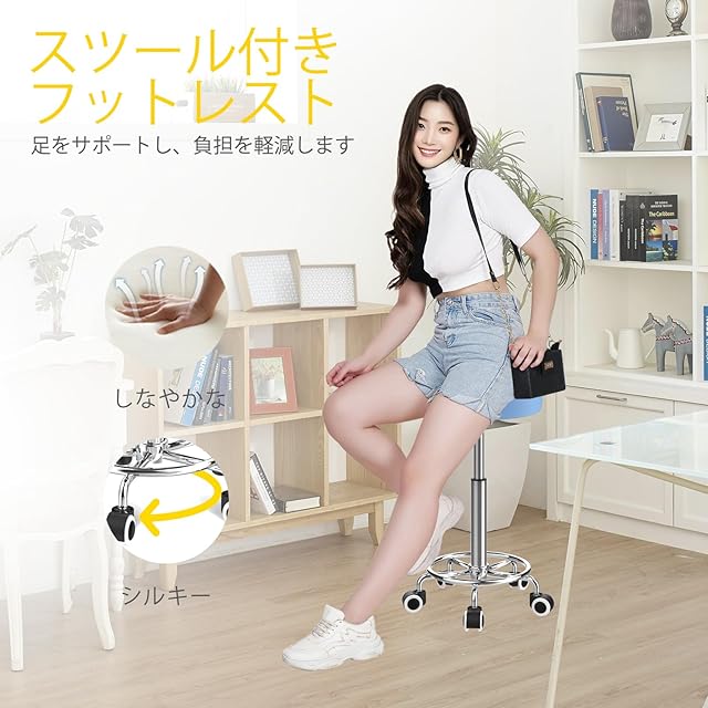 【簡単な取り付け、便利な収納】:詳細な図解入り説明書が付いているので、初心者でも簡単に組み立て始められ、すぐに完成するので、貴重な時間を節約できます。 丸椅子 キャスター付きは、従来の背もたれ付きチェアよりもコンパクトで、場所を取らず、収納も簡単です。
