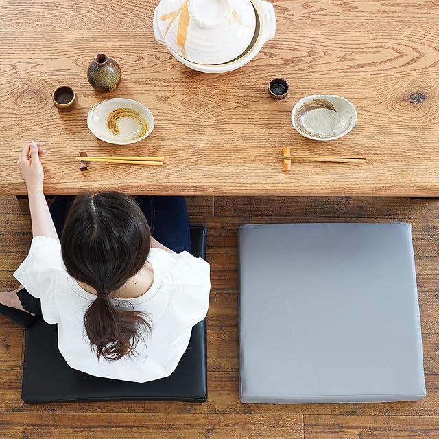 金鵄 レザークッション 日本製ウレタン 低反発 高反発 座布団 コラム 50x50x5 (ブラック, 2)