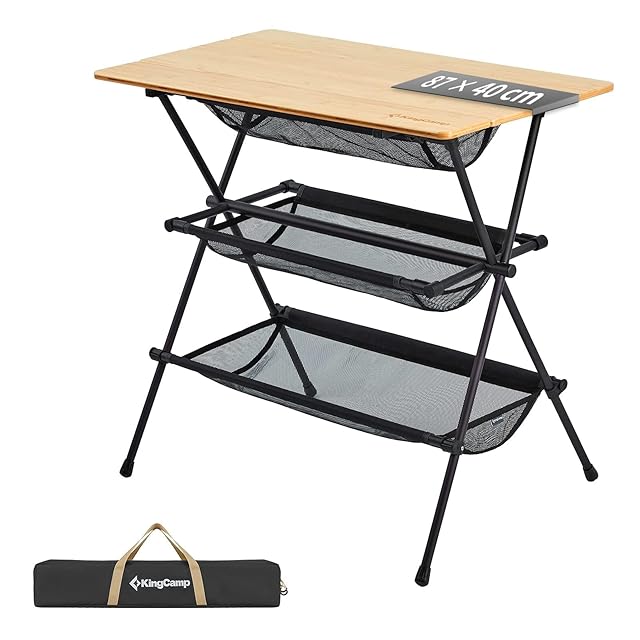 KingCamp アウトドア テーブル キャンプ キッチンテーブル ラック 3段 多機能 折り畳み 耐荷重50kg 安定性 頑丈 小物置き コンパクト収納 軽量 収納棚 アウトドア 家庭用 ソロキャンプ ピクニック 収納袋付き 80x46x75 cm