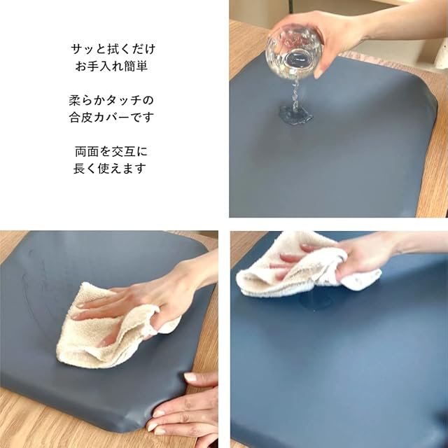 ソフトレザー素材のシートクッションです。耐圧分散で疲れにくく、サッと拭くだけお手入れ簡単。柔らかタッチの合皮カバーです。